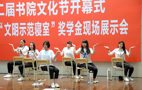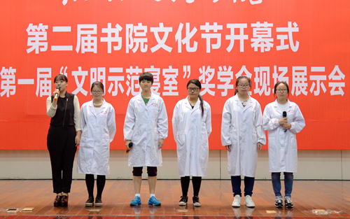 为扎实推进文明寝室创建,深入开展大学生文明修身活动,5月30日晚,校第二届“书院文化节”开幕式暨第一届“文明示范寝室”奖学金现场展示会于铁城科教馆报告厅隆重举行。市教育局高教处领导,我校党委组织部、学工部、保卫处、计财处、校团委负责人,各书院院长、副院长、院务主任、辅导员,获奖学生代表,书院学生代表,公寓管理员代表等400余人参加活动。