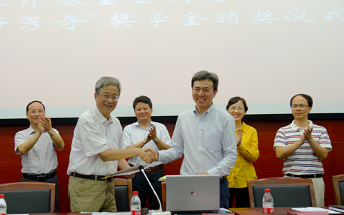 5月30日下午石国洪校友向校教育基金会捐赠暨首届“好秀奇”奖学金颁奖仪式在南山校区7号楼1楼报告厅举行。深圳好秀奇服饰有限公司执行董事、广东校友会会长、英语89届石国洪校友,校党委副书记沈赤,教育基金会理事、校友总会会长宋培基,校友联络办(教育基金会)、外国语学院相关负责人,以及师生代表共260多人出席仪式。