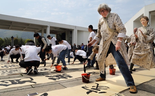 4月12日,阳光明媚,春意盎然,一年一度的“畅写阳春”活动在兰亭书法艺术学院照壁广场举行。兰亭书法艺术学院、学校相关职能部门负责人,兰亭书法艺术学院全体老师和学生,学校学生社团骨干,部分外籍教师和留学生,以及来自瑞士的书法游学团参与书写活动。
