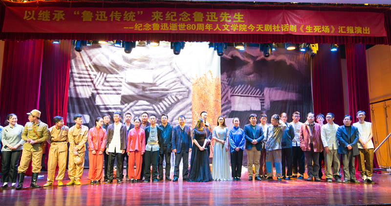 12月23日晚,人文学院今天剧社在月明音乐楼举行了《生死场》话剧表演。我校副校长、浙江省鲁迅研究会会长寿永明教授,学校相关部门负责人以及参加纪念鲁迅逝世80周年暨“浙江鲁迅研究的回顾与展望”学术研讨会的专家等应邀观赏了演出。话剧的精彩演出受到领导和专家的一致好评,也引起了全场观众的热烈反响。