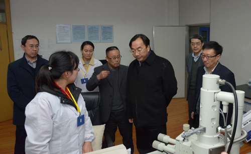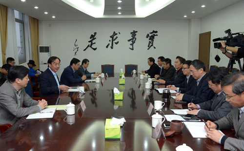 马卫光先后来到河东、河西及南山校区,考察化学化工学院省精细化学品传统工艺替代技术研究重点实验室和医学院医学实验中心,详细了解科技创新、成果转化以及教学教研等情况,他希望学校继续加大创新力度,为绍兴调整优化经济结构、加快产业转型升级提供更有效的科技支撑。马卫光还参观了校史馆,了解学校发展历史。随后,马卫光主持召开座谈会,听取学校发展情况汇报,研究协调相关问题。