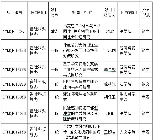 日前,浙江省2017年度哲学社会科学规划立项结果正式公布,我校共获批11项,其中由洪波老师主持申报的《马克思“个体”与“共同体”关系视界下的中国社会治理研究》获重点项目,丁志刚等10位老师获一般项目。详见附表。