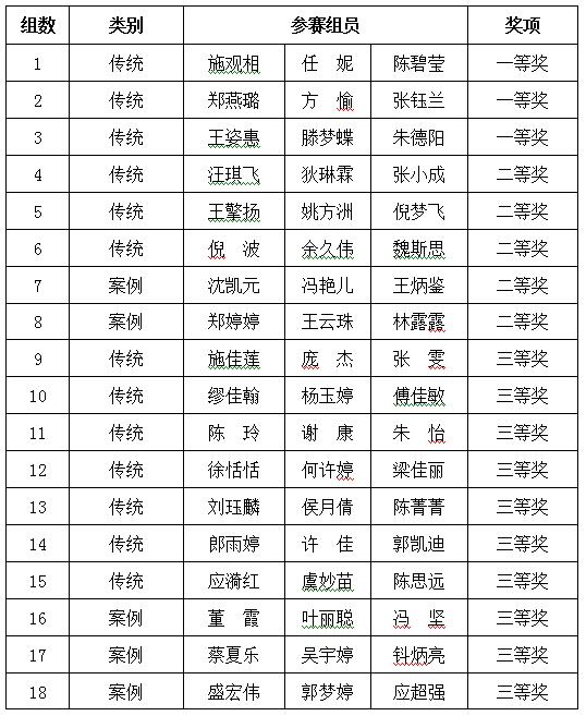 全省共有36所本科院校的576支队伍参加初赛,其中传统组476支,案例组100支,另有省外的南京审计学院、安徽财经大学、山东财经大学派出参赛队伍。经过初赛评审,17所院校的102支队伍入围决赛。我校共派出19支队伍参加初赛,18支队伍获奖,初赛获奖率达到95%。