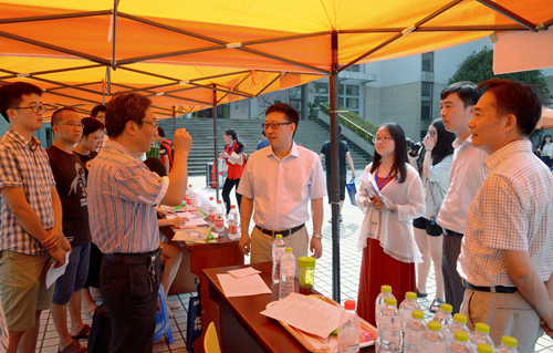 在阳明书院,汪书记询问了教育学院、医学院新生报到情况和迎新接待工作。他讲到自己当年入学报到时的情景,对书院接待工作和学院教授担任新生班主任的做法予以肯定。