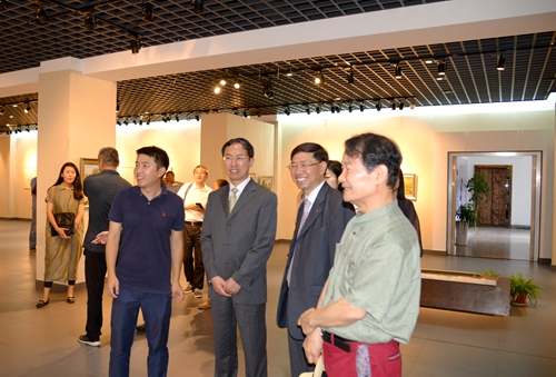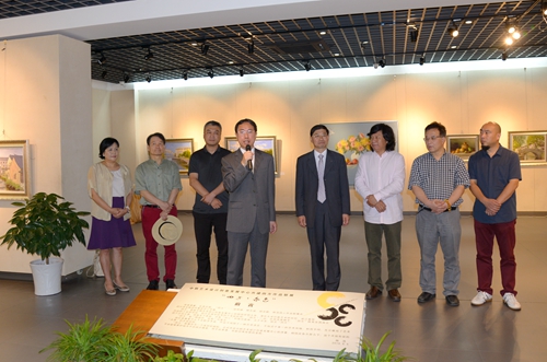 签约仪式后,中心共建四方作品联展在恂如美术馆开幕,此次联展展出旅绍油画家、祥明大学原任校长徐明德、清华大学美术学院纤维艺术研究所所长林乐成、浙江省现代纺织工业研究院院长胡克勤和我校美术学院院长陈浩四位艺术家的油画、纤维艺术、国画作品。通过四方联展这个良好契机,正式开启中韩艺术设计创意发展中心的序幕。