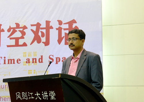 叶飞帆代表学校对各位嘉宾表示热烈欢迎。他表示,我校承办“鲁迅与泰戈尔:跨时空对话”的中印文化交流活动,是继前年“鲁迅与雨果”和去年“鲁迅与托尔斯泰”的“大师对话”后,迎来的第三场“鲁迅与世界文豪:跨时空对话”活动。1924年,泰戈尔先生访问了中国,在当时掀起了一阵“泰戈尔热”。鲁迅先生也参加了泰戈尔的64岁生日庆祝大会。此后,鲁迅便多次谈论起泰戈尔先生。叶飞帆认为,此次“大师对话”不仅让我们更进一步认识鲁迅与泰戈尔心灵的相通性,而且也进一步认识到鲁迅与泰戈尔文化遗产的当代价值。“大师对话”的开展不仅将两位文豪的文化交流精神延续到今天,也将更进一步深化中印两国的文化交流。