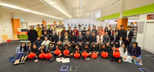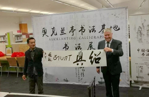 展览当日,新西兰陶波市市长大卫•爵瓦阀斯先生亲自为该市第一个中国书法展开幕致辞。同时,大卫•爵瓦阀斯市长热烈欢迎我校“百人计划”书法团的师生,感谢师生们对此次书法展的辛勤付出。开幕式上,我校师生与陶波市TE KURA O WAITAHANUI小学学生代表开展了生动有趣的书法教学互动以及绍兴传统越剧表演。我校兰亭书法艺术学院苏晓敏老师与陶波市市长大卫•爵瓦阀斯共同泼墨,书写下“绍兴TAUPO”友谊的墨宝。