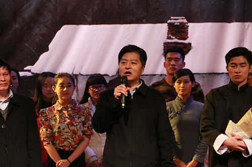 演出结束,何俊杰副部长应邀讲话。他对话剧《家》的成功表演给予祝贺,对演职人员的表演和人文学院今天剧社坚持多年的校园高雅艺术工作给予充分肯定。他提议学校排演“2016纪鲁”大戏,鼓励话剧《家》走出校园,今天剧社走出校园,走向社会,争取为“两美”绍兴建设和社会主义文艺繁荣作出贡献。