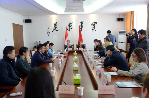 我校在加拿大高贵林市设立“兰亭书法课堂”,每年定期派出3名兰亭书法艺术学院的教师和学生到该市,为那边的中小学教师与学生教授书法。3月15日下午在行政楼5楼会议室,加拿大高贵林市学务委员会主席Judy Shirra、教育局局长Patricia Gartland率学务委员、教师等共12人来校洽谈设立“兰亭书法课堂”事宜,并签订合作意向书。寿永明副校长、外事处与兰亭书法艺术学院负责人等参加仪式。