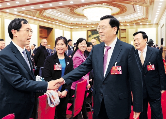 张德江委员长与叶飞帆代表亲切握手(图片来自浙江日报3月6日头版)