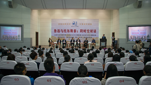 10月14日下午,铁城科教馆座无虚席,气氛热烈,由绍兴市鲁迅文化基金会发起,我校承办的“鲁迅与托尔斯泰:跨时空对话”中俄文化交流活动在我校举行。来自中、俄两国的嘉宾:鲁迅后人和托尔斯泰后人、鲁迅研究者等做客风则江大讲堂。以鲁迅与托尔斯泰两位世界文豪跨时空的文学交际为纽带,分别就鲁迅、托尔斯泰在中俄文化交流中的作用,鲁迅与托尔斯泰的心灵遇合,鲁迅、托尔斯泰作品在中俄两国读者中的影响,托尔斯泰与鲁迅文化遗产在今天的价值等议题进行对话交流。