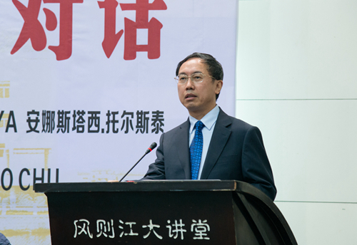 叶飞帆校长对到场嘉宾表示热烈欢迎,他表示,此次我校承办“鲁迅与托尔斯泰:跨时空对话”中俄文化交流活动,是继去年“鲁迅与雨果:跨时空对话”后又一项重要的国际文化交流活动。鲁迅和托尔斯泰两位蜚声世界的伟大作家虽然从未谋面,但他们的心灵、思想和作品紧紧连接着中、俄两个民族的精神和命运。他认为,此次对话交流是对两位文豪曾经心灵遇合和心灵交流的延续。