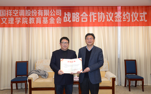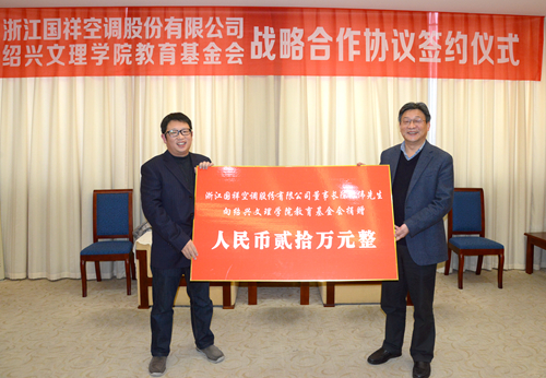 青年企业家设基金圆儿时梦——我校教育基金会与浙江国祥空调股份有限公司签订合作协议