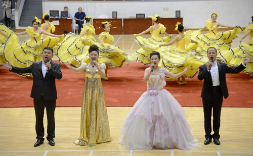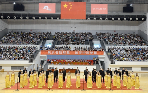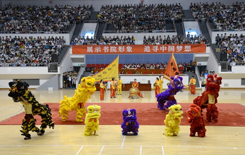 开幕式后,各书院学生代表为到场师生带来了一场异彩纷呈的文体表演,赢得观众台上阵阵热烈的掌声、喝彩声。竞雄书院学生深情演唱《大禹治水歌》,以深沉宏伟的声音撼动全场,之后带来武术《套路表演》,雄壮威武的音乐旋律,震撼人心的一招一式,将中国武术的内在美诠释的淋漓尽致。一枪,一剑,一刀,舞出文理人团结合作,自强不息的精神!“力争第一,是我们的目的……”伴着激情的音乐旋律,竞雄书院再次带来富有动感的群舞表演《我们必胜》。青春是个短暂的梦,由阳明书院、建功书院、仲申书院、文澜书院等带来的歌舞表演《青春修炼手册》,青春激荡,活力四射,感染了在场的每一位师生。舞文理之风采,展水乡之雄威,树人书院、成章书院、羲之书院、东山书院等带来的舞龙舞狮表演《龙腾狮跃》,其跳跃,其舞动,将同学们的目光紧紧抓住,细细品味,沉浸其中。竞雄书院选送的歌舞表演《阳光路上》作为压轴节目,以慷慨激昂的歌声,旋转动人的舞姿,为开幕式画上圆满的句号。