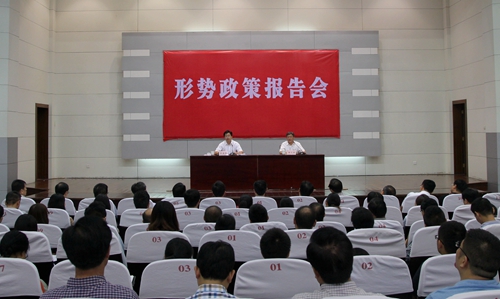 9月18日下午的铁城科教馆座无虚席,市委书记陈金彪来校作形势政策专题报告,介绍绍兴文化,畅谈发展形势,展望未来前景,促进我校教师干部认识当前国内社会经济形势,了解绍兴市“两重”战略和社会经济发展走向,更好地推动学校服务地方工作。他勉励广大师生切实增强中国特色社会主义道路自信、理论自信、制度自信,践行社会主义核心价值观,从历代乡贤身上汲取精神动力,进一步关心绍兴、热爱绍兴、发展绍兴,在创业创新的大舞台中成就人生梦想。校党委书记周达军主持报告会,全体校领导、处级以上中层干部、全体机关干部、学科主任、副高以上职称教师代表及学生代表等400余人聆听了报告。