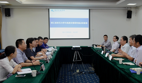 叶飞帆校长代表学校对专家组的到来表示欢迎。华小洋副校长简要介绍了我校已有的两家重点实验室的建设情况。拟建“浙江省岩石力学与地质灾害研究重点实验室”负责人杜时贵副校长汇报了实验室现有基础条件与建设方向目标等方面情况。专家组就相关问题进行质询,对申报实验室下一步建设工作提出具体意见。