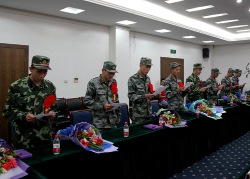 9月14日下午,我校为2015年应征入伍同学举行了一个简短而又隆重的欢送会。学工部、人武部负责人,相关学院学生工作副书记及应征入伍的新兵同学参加了会议。