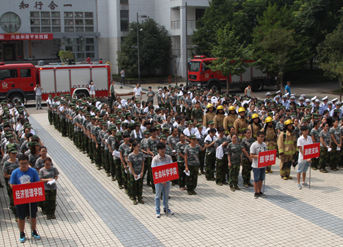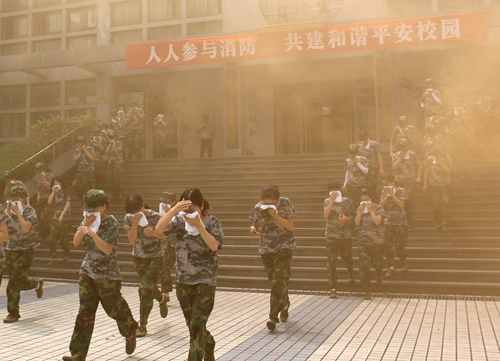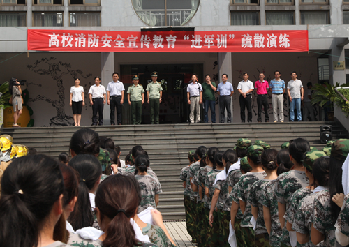 我校举行消防安全宣传教育“进军训”疏散演练活动