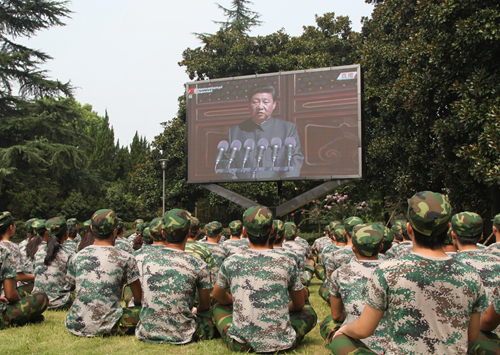 为胜利喝彩——2014级军训学生集体观看抗战胜利70周年纪念大会直播