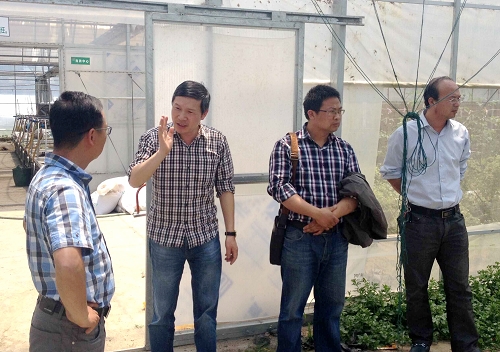22日上午,我校科研处负责人、生命科学学院汤访评、元培学院王国夫等老师一行在嵊州市科技局领导的陪同下来到生生蔬菜基地,对基地每个大棚内的农作物进行了实地查看,了解了蔬菜水果种植的整体情况后,双方就当前的优势短板进行了详细分析,并且针对品种引进、培育创新等问题提出了具体方案。