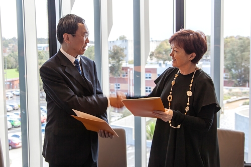 5月11日,叶飞帆校长、机械与电气工程学院白忠喜书记、上虞分院李旦院长和外事处冯燕处长一行到访澳大利亚迪肯大学。迪肯大学校长Jane den Hollander教授,副校长Gary Smith教授,外事处处长、副处长,教育与艺术学院院长,商务与法学院院长,澳大利亚白马市两位高层管理者等出席了会谈。双方就今年教育学院师生暑假短期交流项目的落实进行了商讨;同时,两校还就“兰亭书法学堂”在迪肯大学设立的可行性及具体做法等进行了深入洽谈。当日,两校校长在各方代表的见证下签署了合作备忘录。双方校长都表示希望以此为契机,两校能在包括会计专升本、商务英语和IT等方面的国际化人才培养上加强合作。