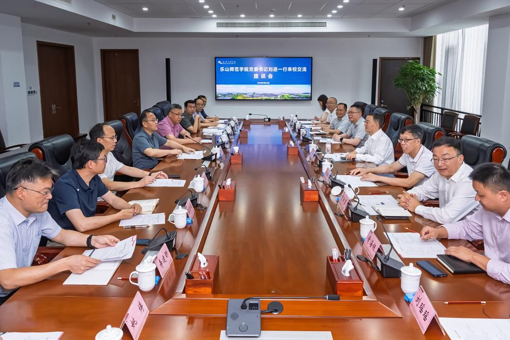 5月23日上午,乐山师范学院党委书记刘进、副校长李朝晖一行9人来访我校。校长赵阳、副校长柳国庆出席座谈交流,双方围绕数智教育改革、专业调整改革及建设、学科建设和研究生教育等开展深入探讨。