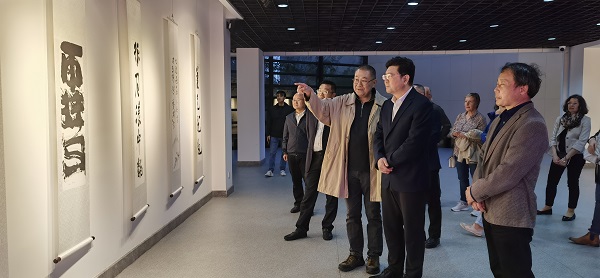 4月8日,“兰亭书法学堂在欧洲·兰亭—日内瓦2024书法展”在我校兰亭书法艺术学院展厅一楼开展。校党委书记崔凤军,校长赵阳,副校长胡云进,绍兴市外办(港澳办)副主任莫骄,瑞士日内瓦大学书法教师王飞,《书法》杂志原执行主编胡传海和副主编、编审杨勇,《美术报》首席记者蔡树农,江苏省国画院副院长刘毅,南京芥墨艺术馆馆长葛高路出席活动,来自瑞士“兰亭书法学堂”的师生代表和我校兰亭书法艺术学院师生代表100余人参加活动。开幕式由胡云进主持。