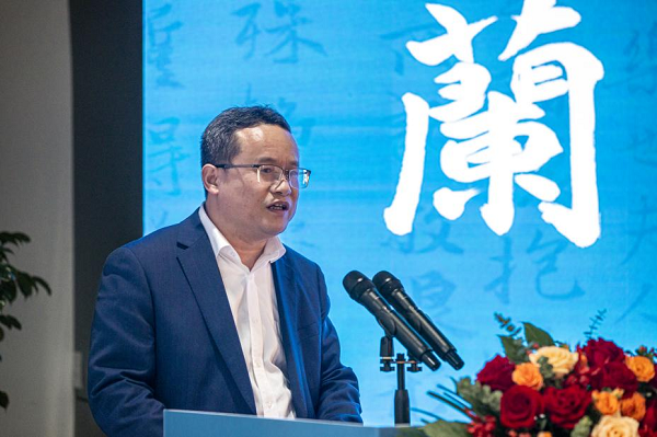 赵阳主持“兰亭之兴”院士书法邀请展开幕式。