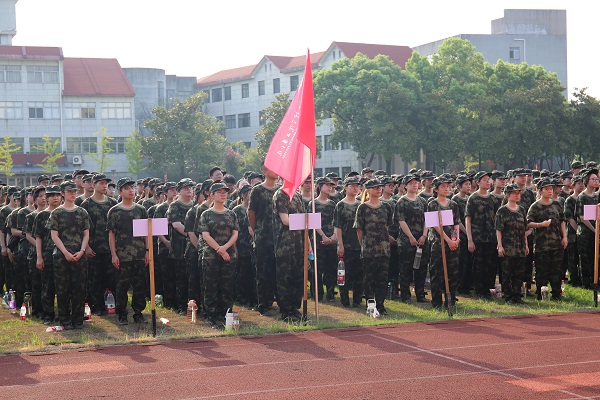 开学典礼后,分院党委书记金列华同志为军训营授旗,军训正式拉开序幕。
