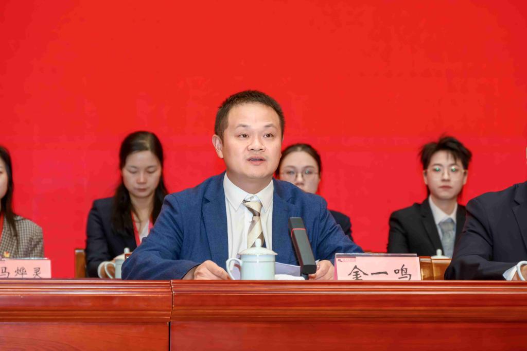 校团委书记潘奕羽作题为《高举旗帜跟党走 挺膺担当勇争先 为建设国内一流的城市综合性大学贡献青春力量》的工作报告。