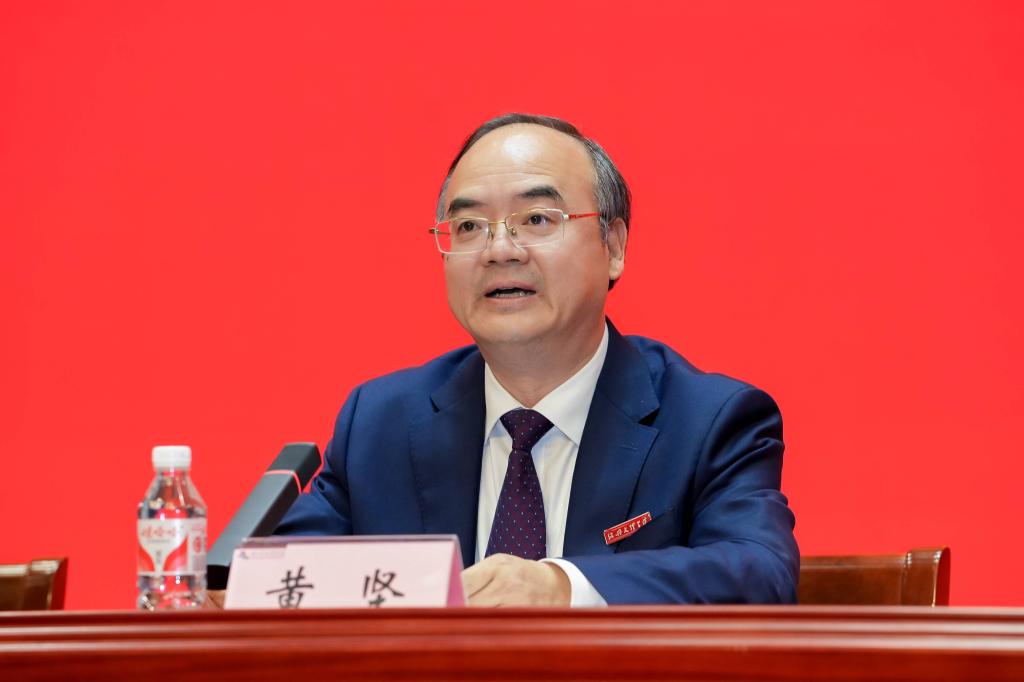 校党委副书记黄坚致大会闭幕词。他代表学校党委向大会的胜利闭幕表示祝贺,向全体代表和工作人员表示感谢。他要求全校各级团学组织传达宣传好、贯彻落实好崔凤军书记和金一鸣书记的讲话精神,深刻领会本次大会精神。就抓好本次大会精神的贯彻落实,黄坚强调,新一届团学班子要提高站位,青春接力再出发,充分彰显共青团的政治底色;全校团学组织要围绕中心,服务青年更有为,全面推进团学事业高质量发展;全校团员青年要挺膺担当,提速奔跑永争先,努力成为德智体美劳全面发展的卓越文理人。
