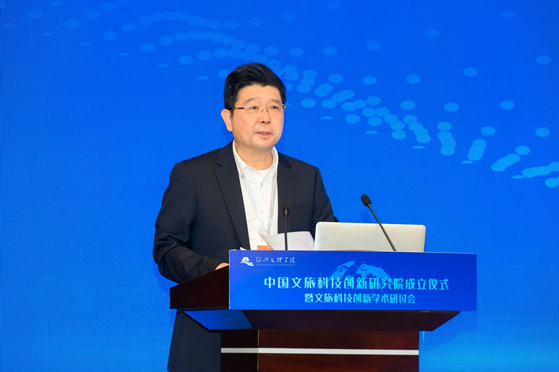 蒋斌致辞。他表示,将在长三角一体化发展战略指引下,依托中国文旅科技创新研究院,积极推进文旅行业创新、转型和推广工作,让文化在旅游的过程中开枝散叶。
