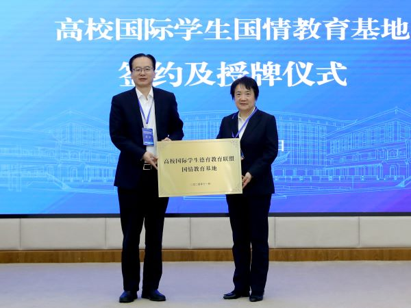 开幕式上,还举行了高校国际学生德育教育联盟授牌仪式。高校国际学生德育教育联盟是2023年5月由我校发起,北京理工大学、中央民族大学等12所高校国际教育职能部门共同倡议成立的国际生德育教育工作交流合作联盟。