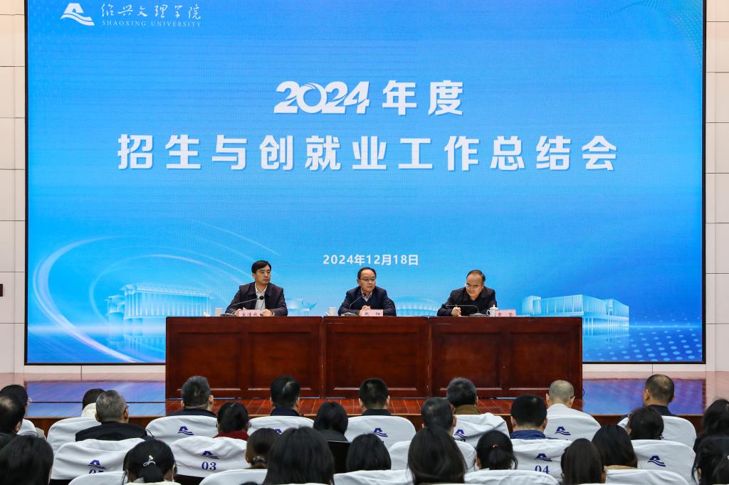 为深入学习贯彻习近平总书记关于高校人才培养工作的重要指示批示精神,全面贯彻党的二十届三中全会、全国教育大会精神,12月18日下午,学校在铁城科教馆报告厅召开2024年度招生与创就业工作总结会,认真总结我校2024年招生与创就业工作,深入分析研判当前高校招生和创就业形势,进一步统一思想认识,汇聚工作合力,扎实做好2025年度招生与创就业工作。校长赵阳,党委副书记黄坚,党委委员、宣传部部长宋浩成出席会议,会议由黄坚主持。