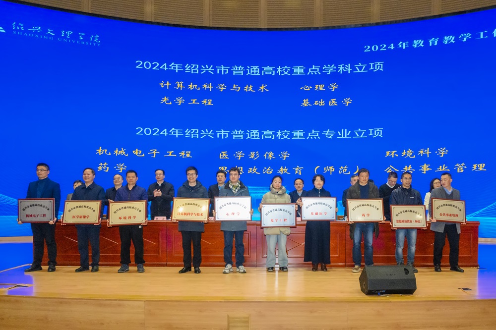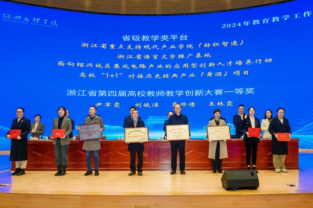 会议举行了授牌与颁奖仪式,为浙江省重点支持现代产业学院建设项目、浙江省首批语言文字推广基地、面向绍兴地区集成电路产业的应用型创新人才培养项目、高校“1+1”对接历史经典产业项目、绍兴市重点建设学科和重点建设专业授牌,为浙江省第四届高校教师教学创新大赛中一等奖获得者颁奖。会上还展示二级学院教学工作“牵头抓总”情况。