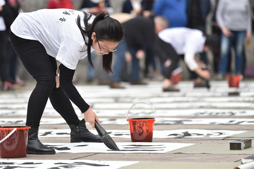 4月5日,中国和瑞士的书法学员在浙江久久精品一区二区|久久久一区二区三区|欧美日韩视频|欧美福利视频|高清欧美性猛交xxxx黑人猛交|久久久www成人免费精品|在线观看成人网站兰亭书法艺术学院内泼墨书写国学经典《千字文》。