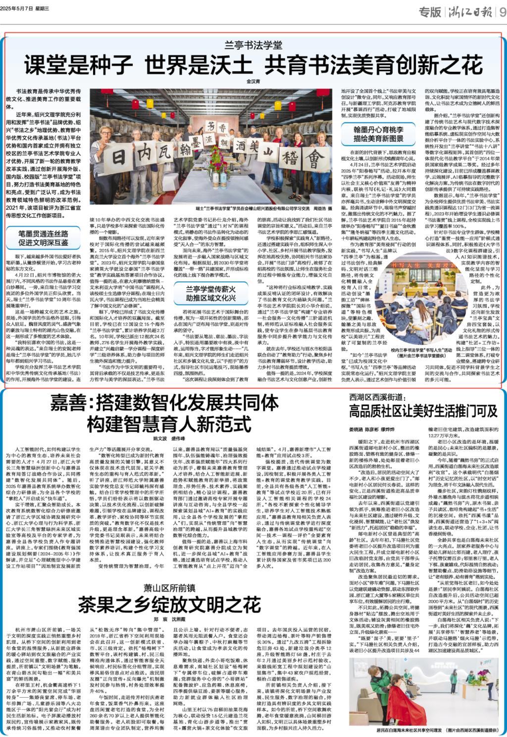 潮新闻5月7日:浙江日报丨兰亭书法学堂:课堂是种子 世界是沃土 共育书法美育创新之花