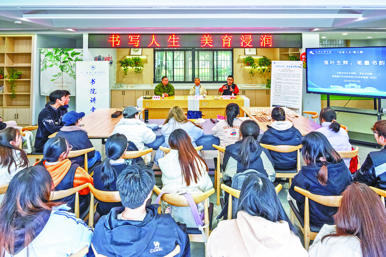 此外,为营造更为浓厚的书法学习氛围,学校还向新生发放“兰亭宝典”文房四宝套装,以文化礼物的形式传递书法艺术的魅力。构建“社团+工作坊+线上指导”三位一体的第二课堂体系,打破专业壁垒,搭建跨专业研习共同体,促进不同学科背景学生之间的交流与合作,共同探索书法艺术的多元可能。(金汉青)
