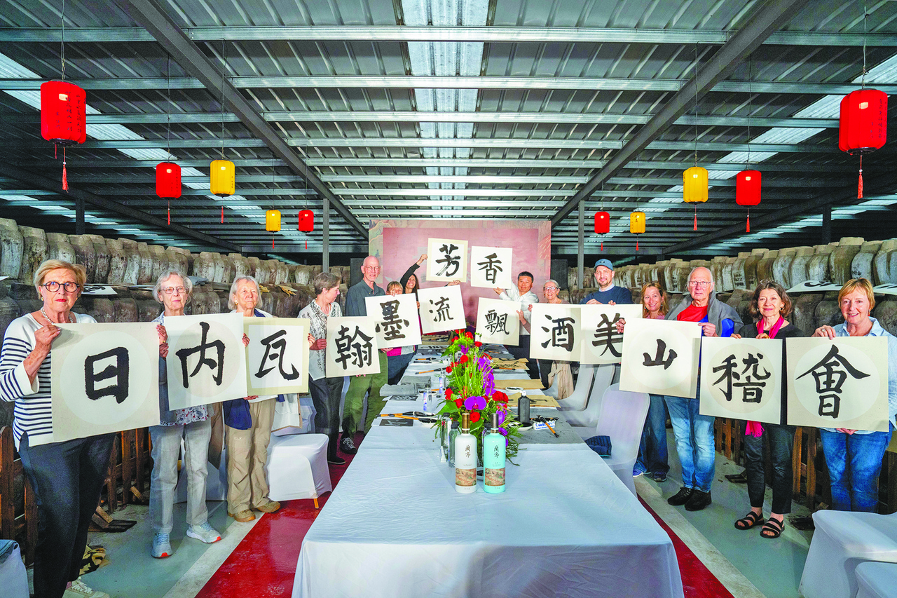 瑞士“兰亭书法学堂”学员在会稽山绍兴酒股份有限公司学习交流 周益浩 摄
