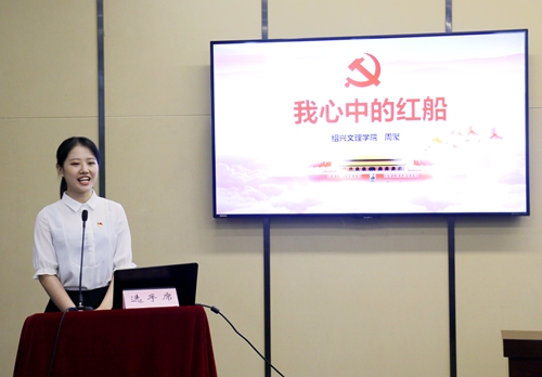 在比赛中,周聚同学以她母亲作为社区工作者无私奉献的事迹为主线,生动地描述了“红船精神”就在我们的身边,在我们的心中,获得全场最高分;张乐怡同学提出作为一名师范生,要以绍兴市道德模范何夏寿校长为榜样,投身于教育事业,为之坚守,为之奋斗;朱祝君同学从我校宋六陵老校址历史的介绍、宋六陵精神解读、宋六陵精神的现代意义三个方面出发,呼吁新时代的青年要牢记习近平总书记提出的“立鸿鹄志,做奋斗者”,做一个拥有理想、追求理想、并为实现理想不懈奋斗的人。