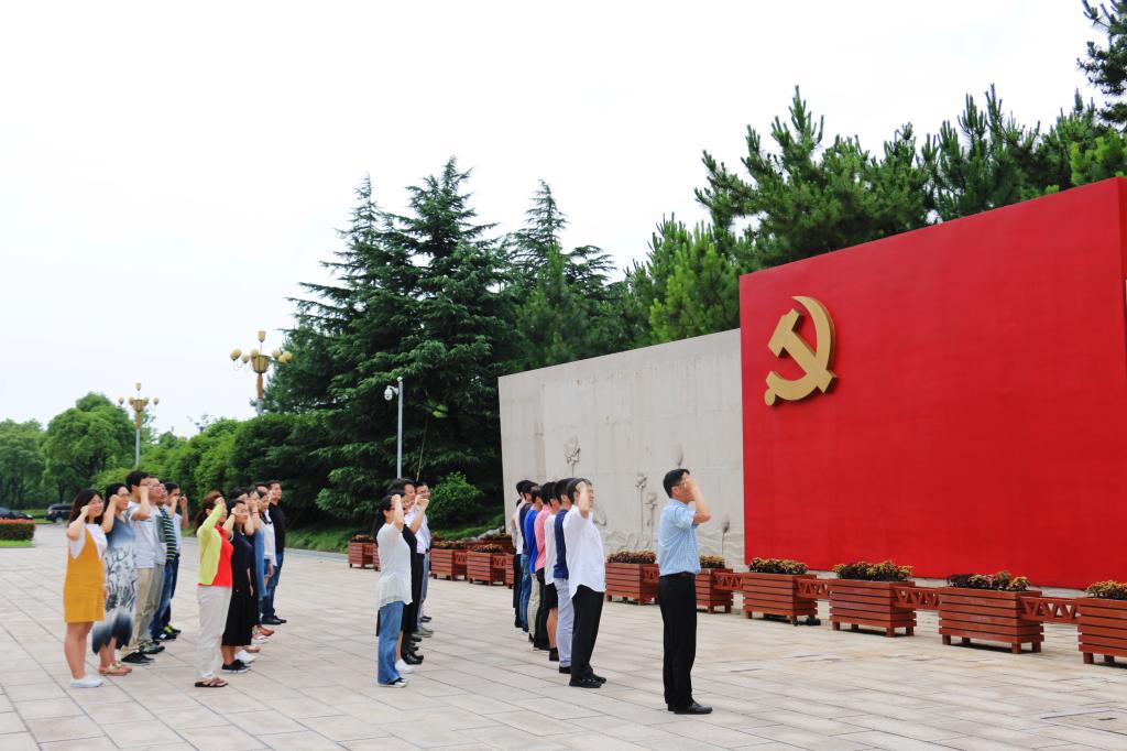 走出纪念馆,党员们来到宣誓墙前,整齐列队,在机关党委书记封国强老师的带领下,高举右手,庄严地重温了入党誓词。