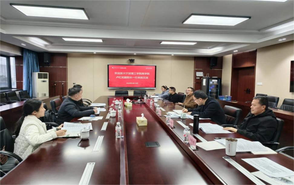 3月14日,浙大宁波理工学院商学院副院长卢红旭一行来我校商学院(法学院)访问交流。商学院党委书记陈伟鸿、副院长丁志刚,学院相关科室负责人参加交流活动。