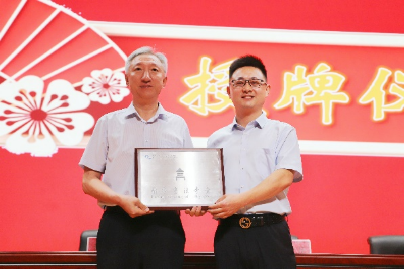 仪式上,陈文龙系统介绍了“兰亭书法学堂”的建设愿景与实施路径。他说,学堂将依托学校深厚资源,深化校际合作,建立共联机制,推动优质书法教育资源共享;积极探索“书法+”跨学科融合教学模式,结合数字技术开发互动体验平台,促进书法艺术在校内外的广泛传播。随后,兰亭书法艺术学院代表正式向乌海一中授牌“兰亭书法学堂”,并赠送了书法教材和教学用具。